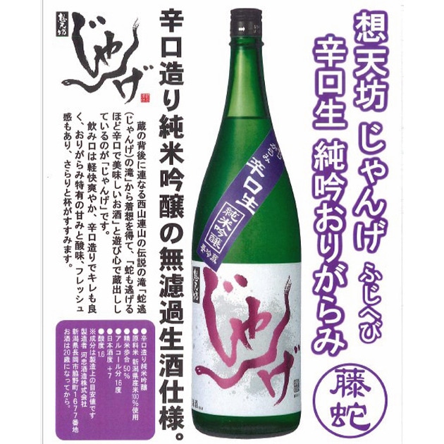 | 商品名 | 河忠酒造 想天坊 じゃんげ~藤蛇(ふじへび)~ 辛口純米吟醸おりがらみ生 |